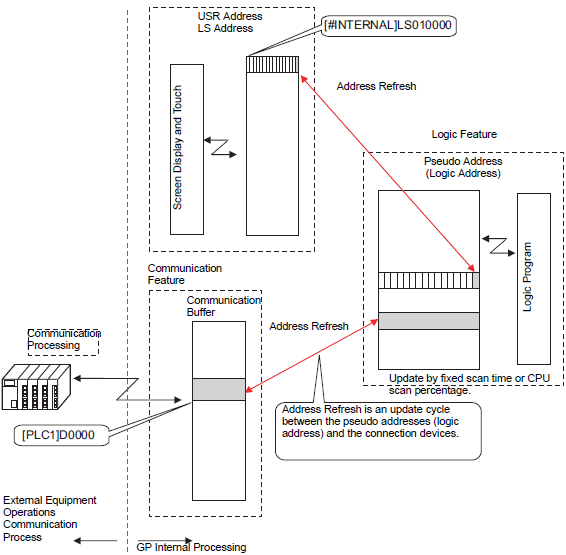 Address refresh and executing the logic program are not synchronized. If logic is executed while data is updating with [Address Refresh], there may be differences in the data.