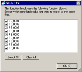 When you drag and drop a nested FB to a package, a dialog box appears with a list of FBs used as instructions. Select the FBs to include in the same package, and click [OK].