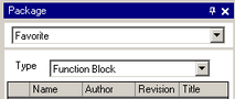 Select a package file in the [Package] window. The FB will be registered in this package. (For example: Favorite)