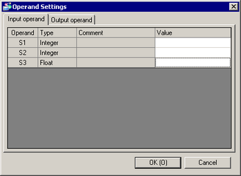 For operands, you specify addresses or variables that match with the variable types of input variables or output variables.