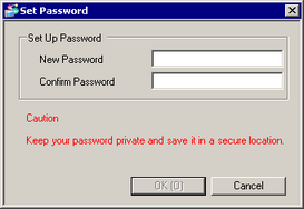 A dialog box for setting password opens. Specify password with up to 10 single-byte alphanumeric characters in [New Password].