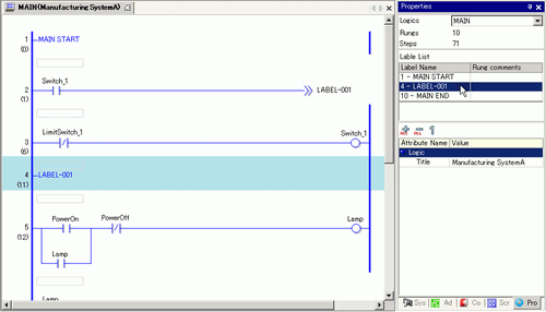 In [Label List], all the logic program labels are displayed. Select a label to move the cursor to the selected logic program label.