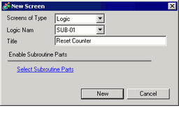 In [Screens of Type], select [Logic] and in [Logic Name], select the subroutine name (for example, SUB-01).