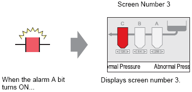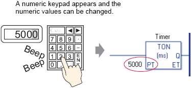 The logic program you write downloads and runs on the display unit. Also, variables created in your logic program can be shared with other screen functions at the time a screen is created (such as switches and lamps).