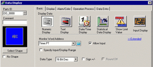 In the Data Display [Monitor Address], enter "Timer.PT". Select the [Data Entry] check box.