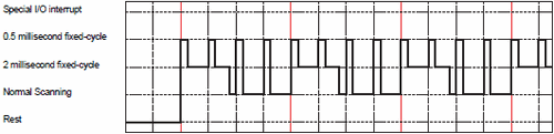 For example, to execute special I/O interrupt processing while 2 milliseconds-fixed processing is being executed, 2 milliseconds fixed-cycle processing is stopped in order to execute special I/O interrupt processing.