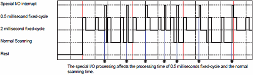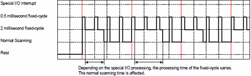When using special I/O that interrupts other processing, you can execute the special I/O interrupt processing at any time. Since the special I/O interrupt processing affects all other processing time, those processing times also increase.