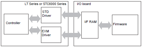 The I/O board sends the control order from the LT series or STC6000 series as shown in the following chart to control various I/Os. All orders and information on the I/O board are sent and received in I/F RAM.