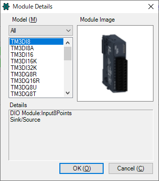 Click [Add Module] to display the [Module Details] dialog box. Specify the TM3 module type and click [OK].