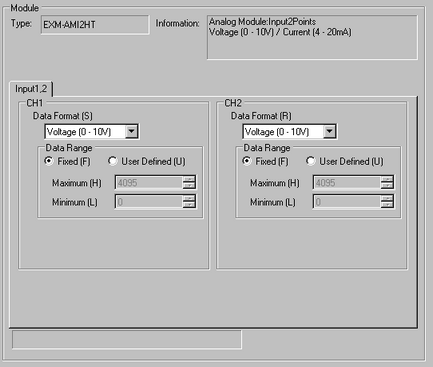 The analog values in the voltage and current input settings appear in the range of 0 to 4095 as shown below.