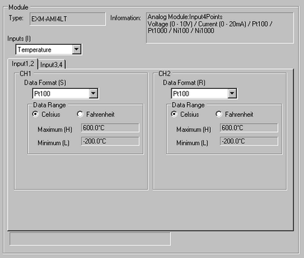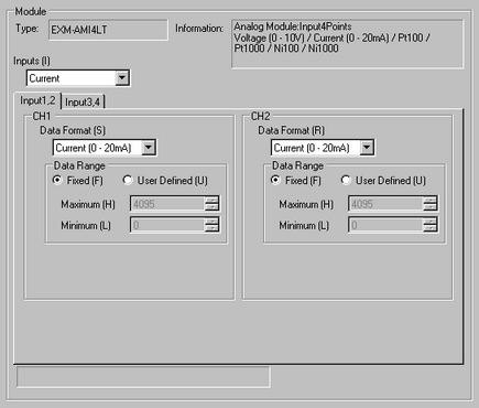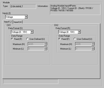 Select the data format type from [Voltage], [Current], or [Temperature] to enter in a module's analog input terminal.