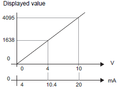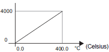 The displayed value is 10 times (0 to 4000) the input value ranging from 0.0°C to 400.0°C.