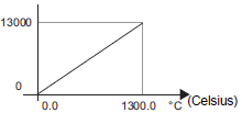 The displayed value is 10 times (0 to 13000) the input value ranging from 0.0°C to 1300.0°C.