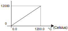 The displayed value is 10 times (0 to 12000) the input value ranging from 0.0°C to 1200.0°C.