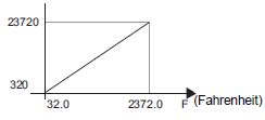The displayed value (320 to 23720) is 10 times the input value (32.0°F to 2372.0°F).