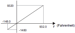 The displayed value (-1480 to 9320) is 10 times the input value (-148.0°F to 932.0°F).