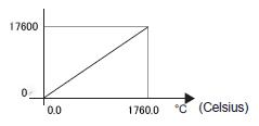 The displayed value (0 to 17600) is 10 times the input value ranging from 0.0℃ to 1760.0℃.