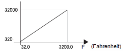 The displayed value (320 to 32000) is 10 times the input value (32.0℉ to 3200.0℉).