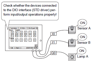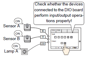 Checking the operation of the device connected to the DIO board type GP3000 series