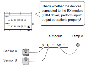 You can check if the logic program will operate normally, and check if the device/PLC connected to the display unit or optional unit will operate normally.