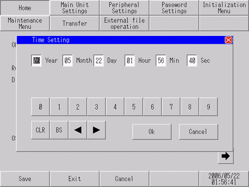 Enter offline mode, and touch the time display area in the control switches to display the [Time Setting] dialog box.