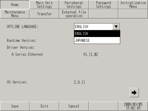 Go to Offline mode and touch [Main Unit] on the item changeover switch.