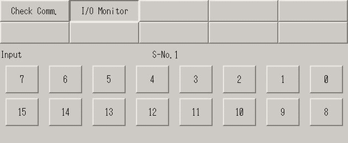 [I/O Monitor] screen opens. Set the [Transmission Speed], [S-No.], [Model], and [Type]. (Example: [S-No.] = 1, [Model] = Input, FN-X16TS, [Transmission Speed] = 6 Mbps, [Type] = Bit)