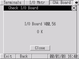 If there is no problem with the I/O board, [OK] is displayed. If there is a problem with the I/O board, an error message appears.