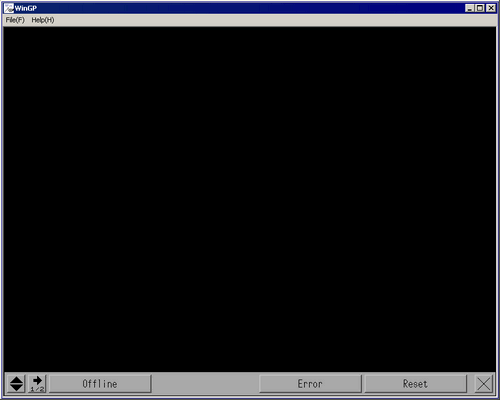 After starting WinGP, the following screen appears. Touch or click the upper right then the bottom left corners, or the upper left and bottom right corners of the panel (within a 40 pixel area) inside 5 seconds.