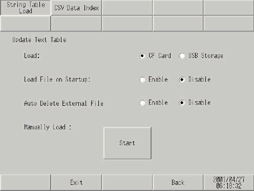 Save the string table data created with GP-Pro EX into the external storage and then read it with the display unit. You can change labels or alarm messages without transferring the project file.