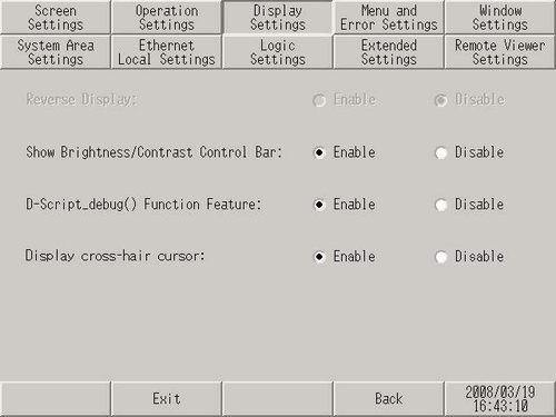 [Display Settings] window opens. In the [Display cross-hair cursor] field, select [Disable].