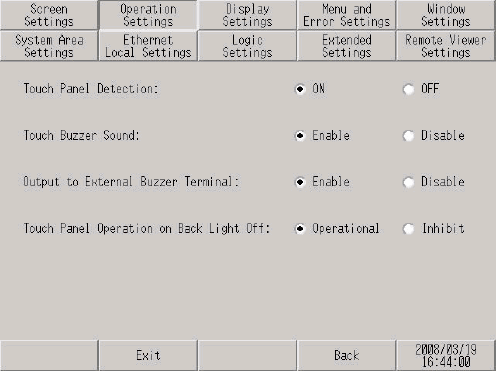 In momentary operation, touch is detected when the screen is touched regardless of the Touch Panel Detection setting. In repeat operation, the Touch Panel Detection setting becomes invalid.