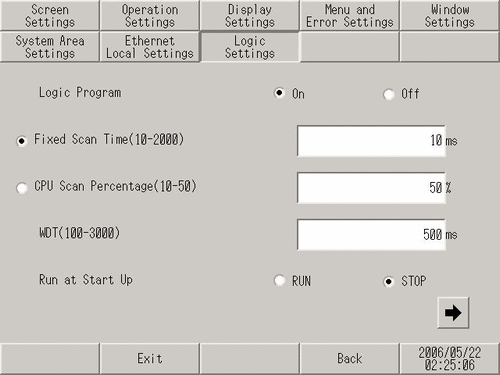 When turning ON the display unit, select whether to [RUN] or [STOP] the logic operation.