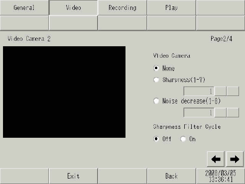 Select the adjustment type of the video camera from [None], [Sharpness], and [Noise decrease]. [Sharpness] displays subjects more clearly. It may also display more noise. [Noise decrease] decreases the contrast to mask any noise. [Sharpness]: Specify from 1 (weak) to 7 (strong).