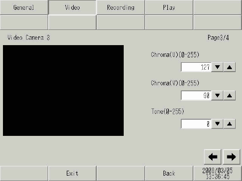 Set the color tone of the video camera screen. The available range is between 0 and 255.