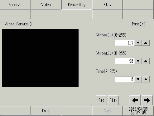 Set the color tone of the video camera screen. The available range is between 0 and 255.