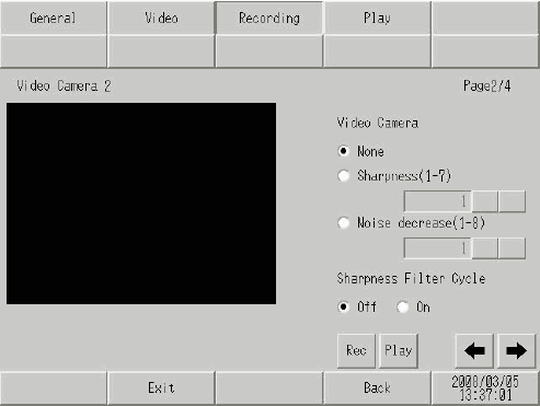 Select the adjustment type of the video camera from [None], [Sharpness], and [Noise decrease].[Sharpness] displays subjects more clearly. It may also display more noise. [Noise decrease] decreases the contrast to mask any noise. [Sharpness]: Specify from 1 (weak) to 7 (strong).