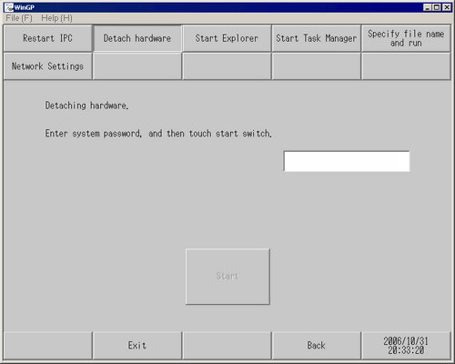 Touch the system password entry field and enter the system password. If you have not specified a system password, enter "1101" (standard password).