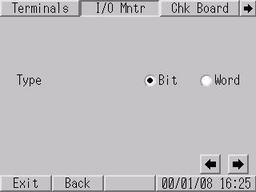 You can display the monitoring results of the standard input and output in either bit or word format. Note that you cannot select [Word] when using special I/O.