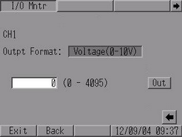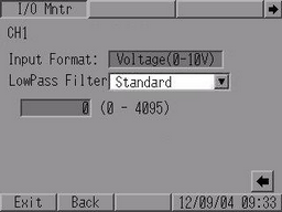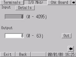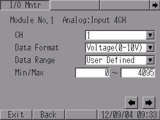 Displays the specified I/O information. Touching the analog I/O number that initiates the I/O monitor displays the I/O Monitor screen.