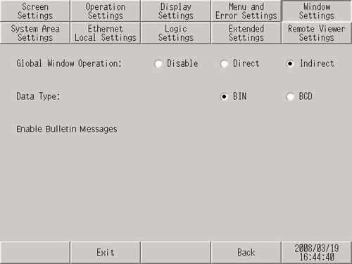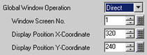 Select the action of the Global Window, available on all screens, from [Disable], [Direct], or [Indirect].