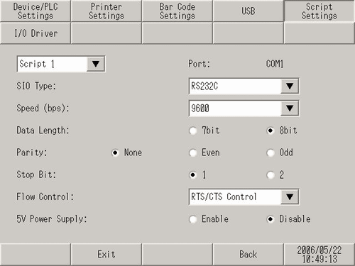 [1200] can be set when using extended script and the [Port] is selected in [USB/SIO(RS422/485)].