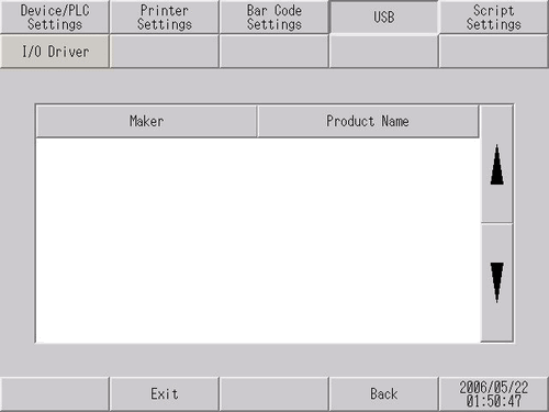 Displays information (manufacturer and product name) about the USB device connected to the display unit.