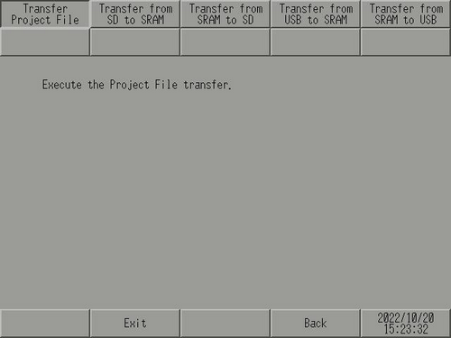 To transfer a project file in offline mode, you need to use the screen above to set the display unit to transfer waiting status.