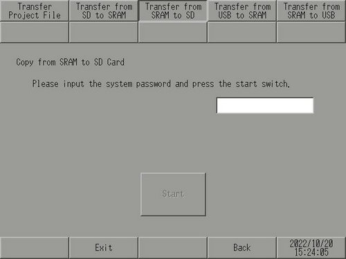 Transfer the backup memory (SRAM) data onto the CF/SD card.