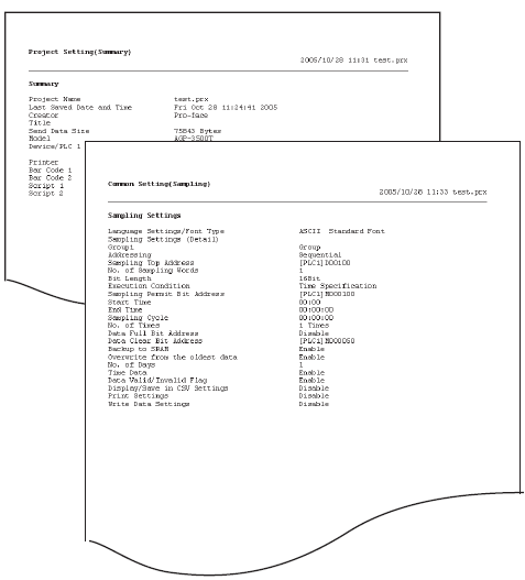 You can print the project settings for a file from GP-Pro EX.This feature is useful for debugging and documenting projects.