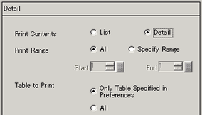 For [Detail] in [Print Contents], select the Print Range from [All] or [Specify Range]. For [Specify Range], specify the Range with text numbers in [Start] and [End].