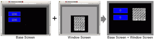 A Window Screen is a screen that displays on top of a Base Screen. You would use this screen for keypad inputs and other functions that display the screen temporarily on top of the Base Screen.
