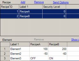 <Recipe ID>,<Recipe Label>,<Element 1 value>,<Element 2 value>,...,<Element n value>