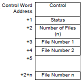 Set the number of files and the file numbers to transfer. When bit 0 of [Control Word Address] turns ON, CSV data from external storage is written to the device/PLC. When bit 1 turns ON, device/PLC data is saved to the external storage as defined by the [Condition].